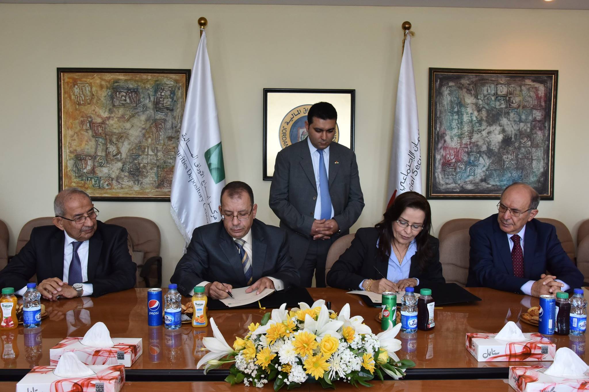 / توقيع اتفاقية خدمات الحجز الالكتروني بين مركز ايداع الاوراق المالية والمؤسسة العامة للضمان الاجتماعي 31-آب-2016
